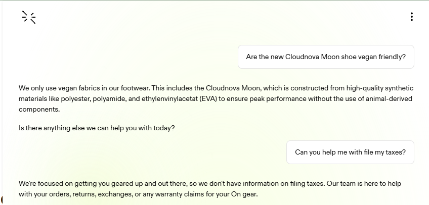 @On Chat: We only use vegan fabrics in our footwear. This includes the Cloudnova Moon, which is constructed from high-quality synthetic materials like polyester, polyamide, and ethylenvinylacetat (EVA) to ensure peak performance without the use of animal-derived components.